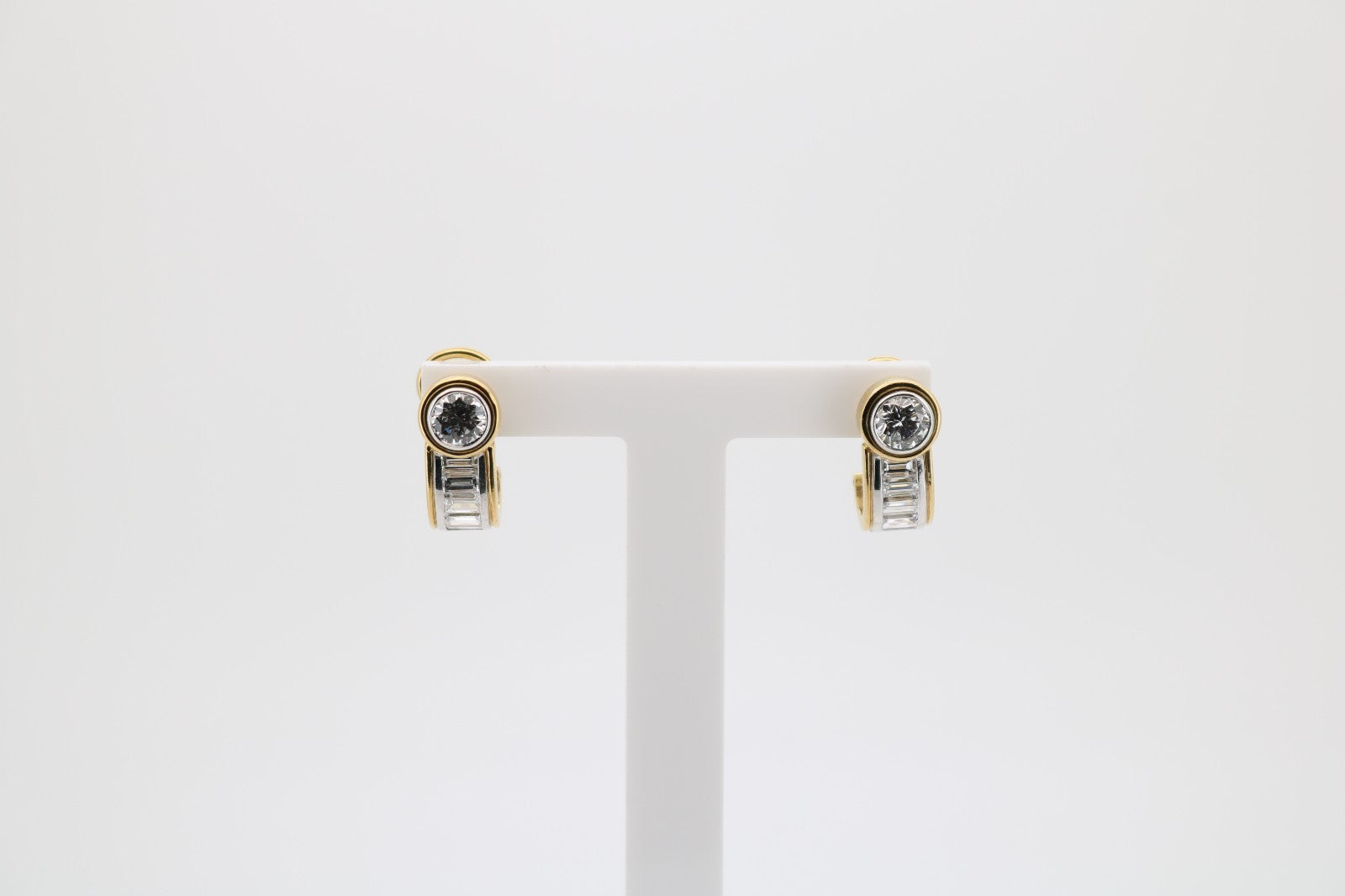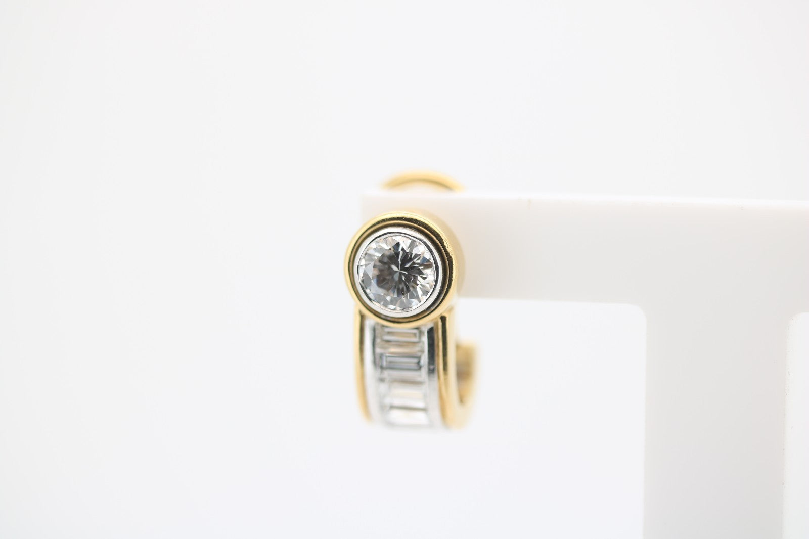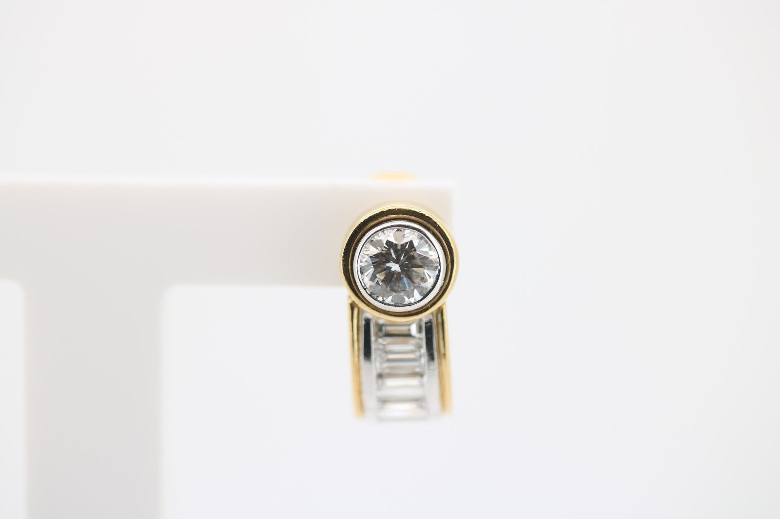 Jeweils besetzt mit 1x Brillant ca.070ct (Top Wesselton, VS) sowie 5x Diamant Baguetteschliff